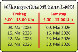 Samstag: 9.00 - 13.00 Uhr (ausgenommem Feiertage)